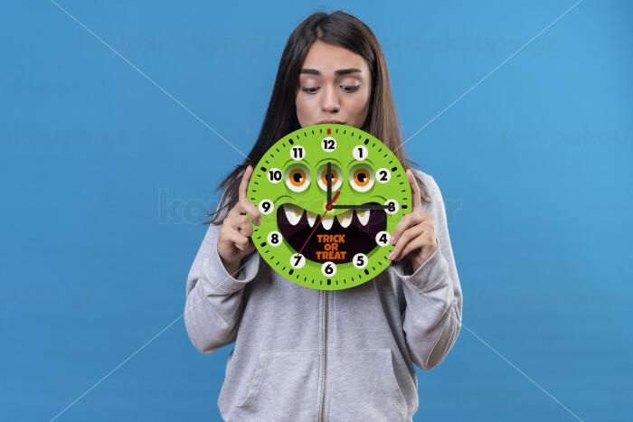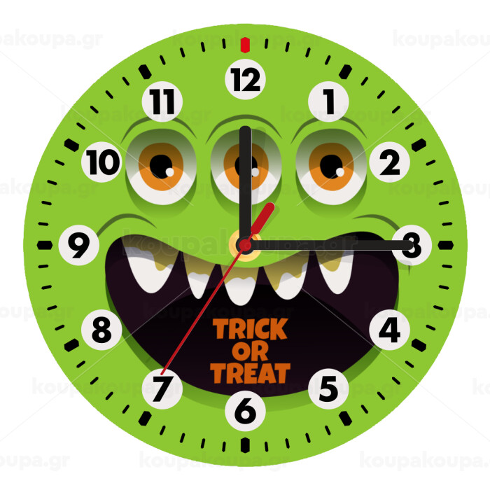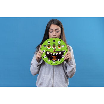 Halloween trick or treat 3 eyes monster, Wooden wall clock (20cm)