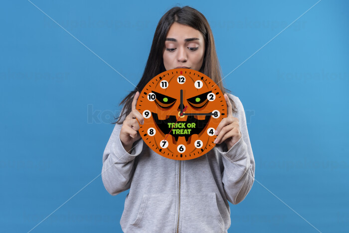 Halloween trick or treat Pumpkins, Wooden wall clock (20cm)
