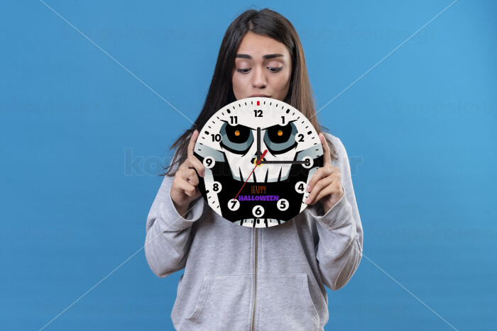 Halloween trick or treat Skeleton, Wooden wall clock (20cm)