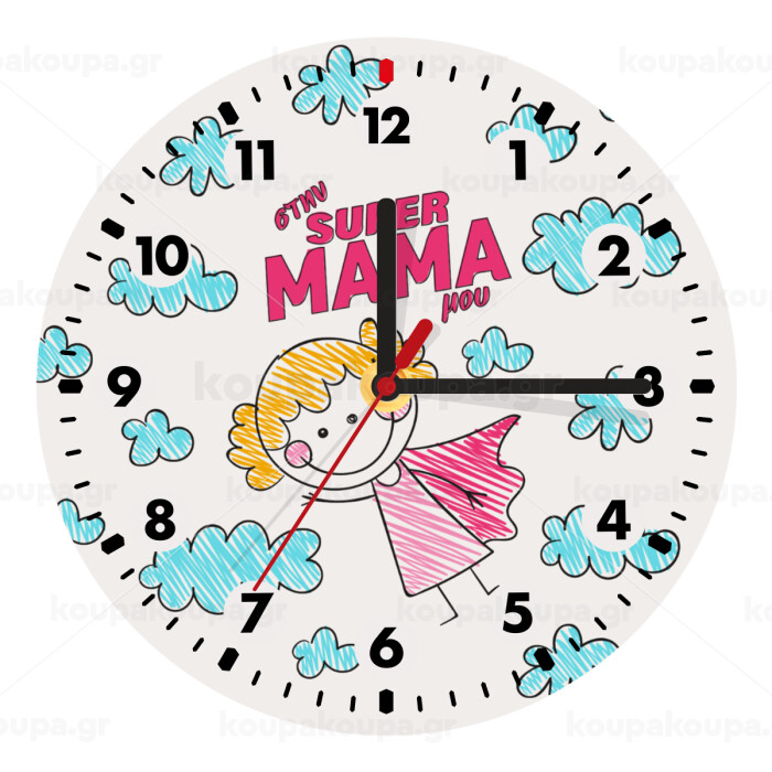 Στην SUPER μαμά μου, comic, Wooden wall clock (20cm)