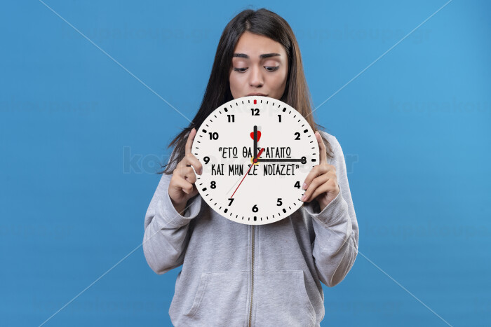 ΕΓΩ ΘΑ Σ’ΑΓΑΠΩ ΚΑΙ ΜΗΝ ΣΕ ΝΟΙΑΖΕΙ..., Wooden wall clock (20cm)
