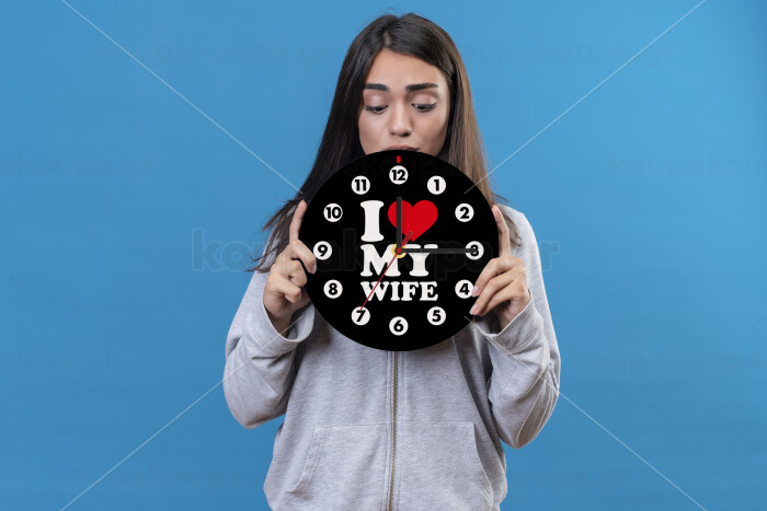 I Love my Wife, Wooden wall clock (20cm)