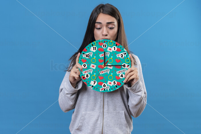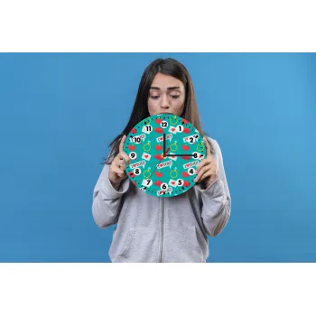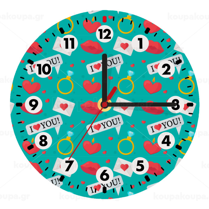 I Love You hearts rings & kiss pattern, Wooden wall clock (20cm)
