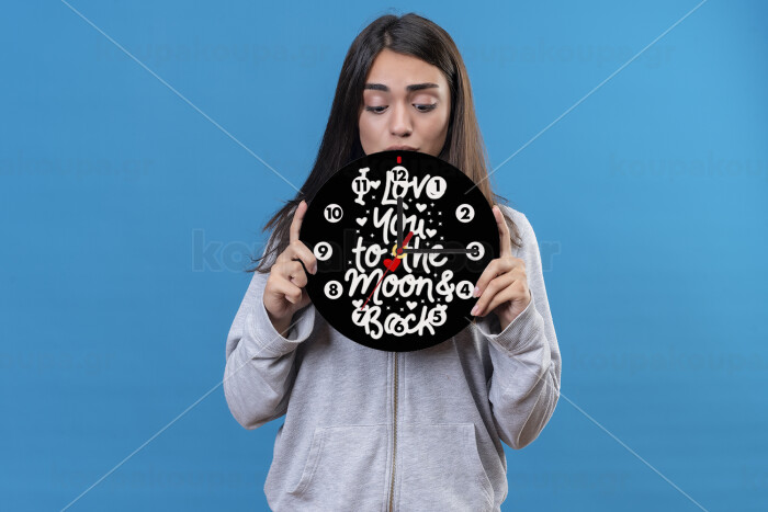 I love you to the moon and back with hearts, Wooden wall clock (20cm)