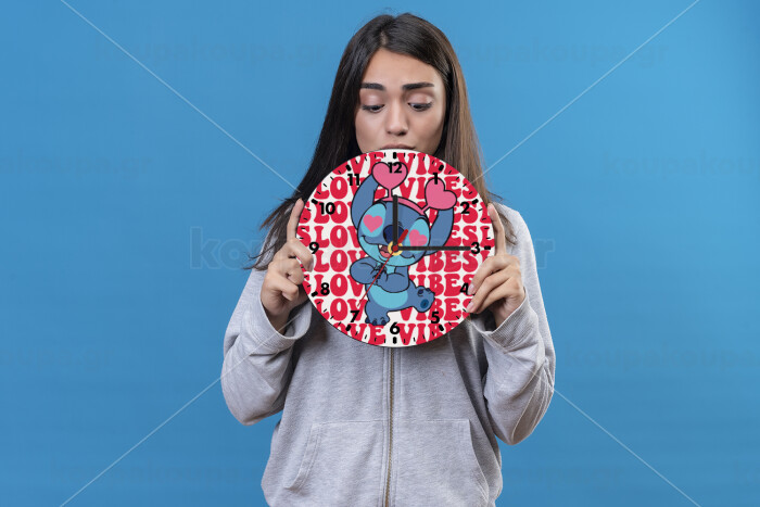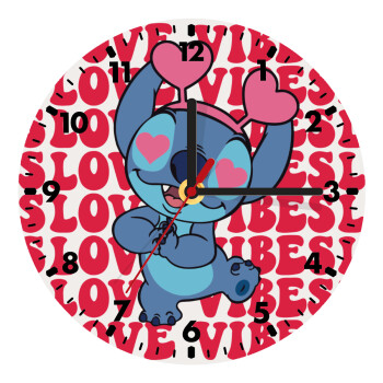 Lilo & Stitch Love vibes, Wooden wall clock (20cm)