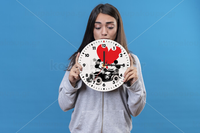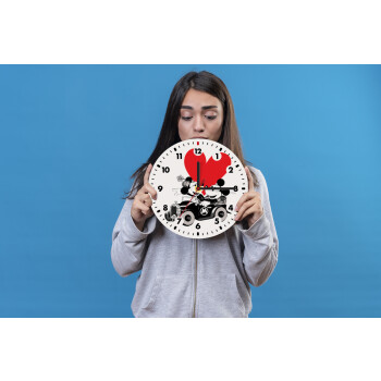 Mickey & Minnie love car, Wooden wall clock (20cm)