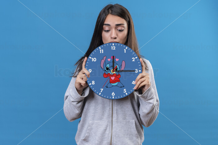 Stitch heart, Wooden wall clock (20cm)