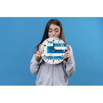 Ελληνική σημαία watercolor, Wooden wall clock (20cm)