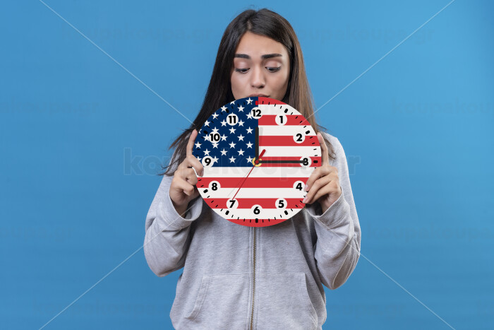 USA flag, Wooden wall clock (20cm)