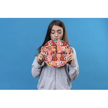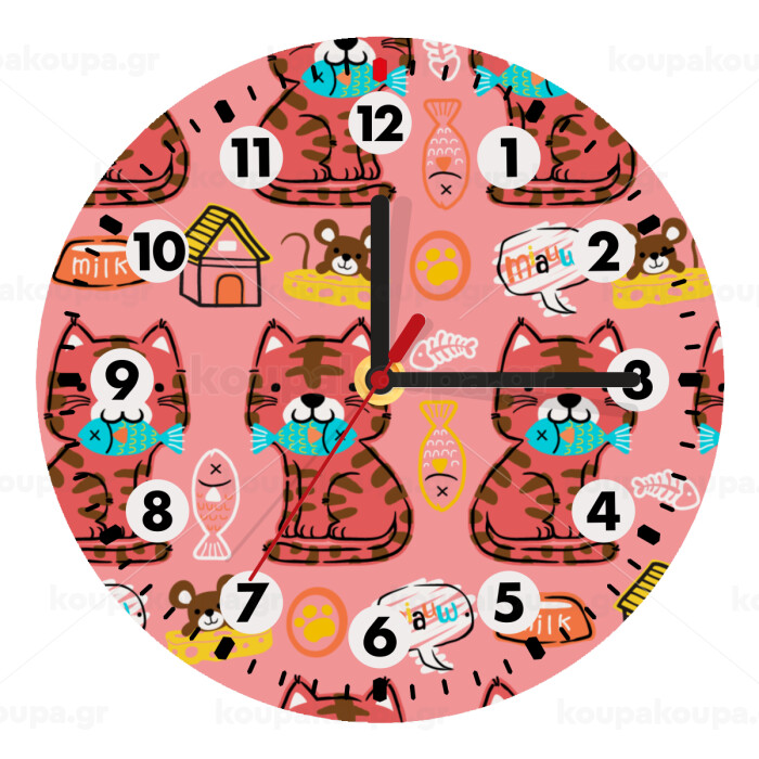 Cats and Fishes, Wooden wall clock (20cm)