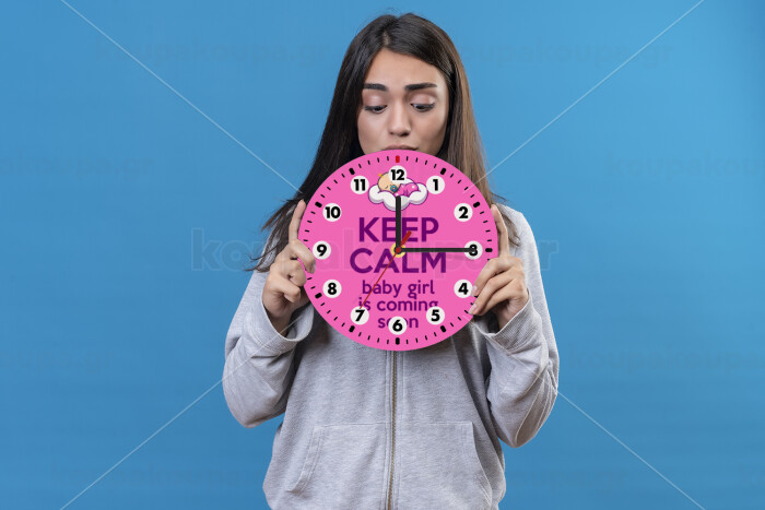 KEEP CALM baby girl is coming soon!!!, Wooden wall clock (20cm)