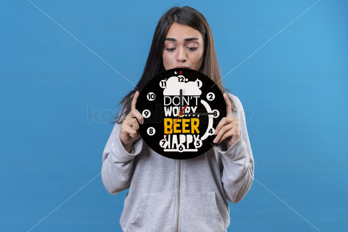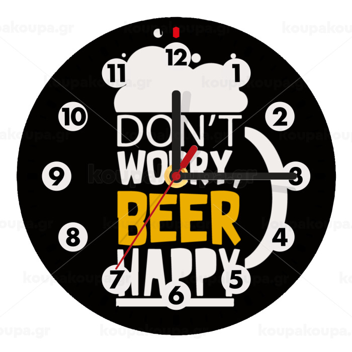 Don't worry BEER Happy, Wooden wall clock (20cm)