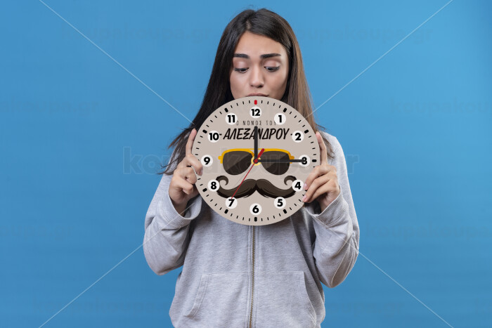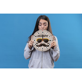 Ο νονός μου, μουστάκι με γυαλιά, Wooden wall clock (20cm)