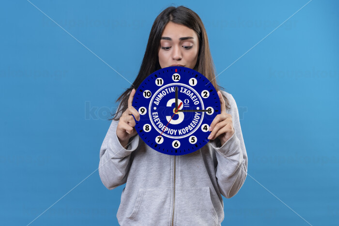 Έμβλημα Σχολικό μπλε, Wooden wall clock (20cm)