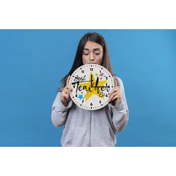 Teacher super star!!!, Wooden wall clock (20cm)