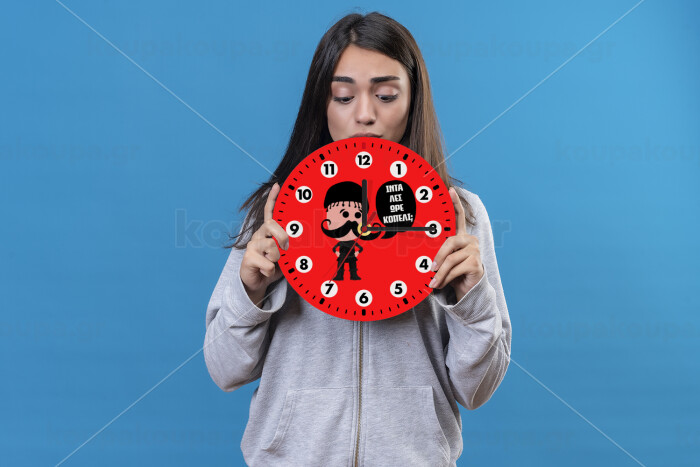 Κρητικός "Ίντα λες ωρέ κοπέλι", Wooden wall clock (20cm)
