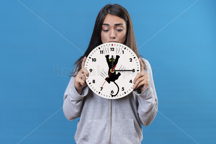 cat grabbing, Wooden wall clock (20cm)