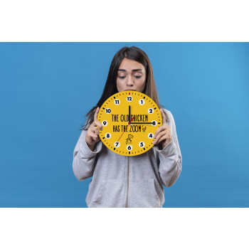The old chicken has the zoom, Wooden wall clock (20cm)