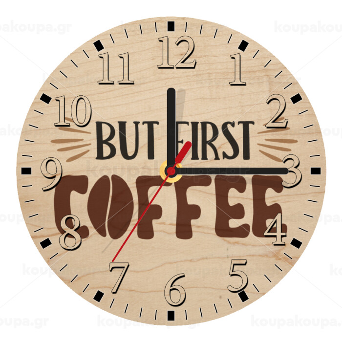 But first Coffee, Ρολόι τοίχου ξύλινο plywood (20cm)