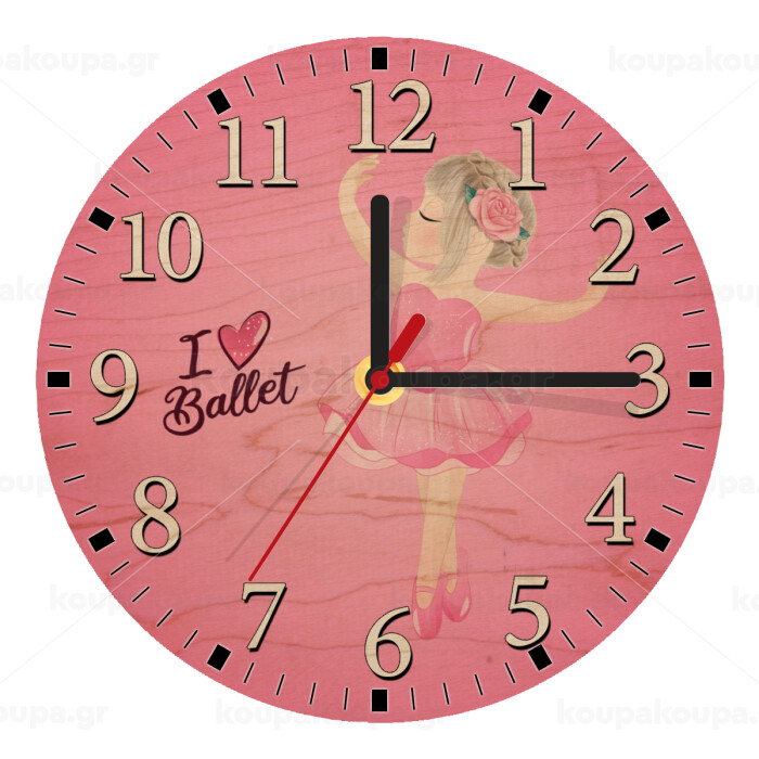 I Love Ballet, Ρολόι τοίχου ξύλινο plywood (20cm)