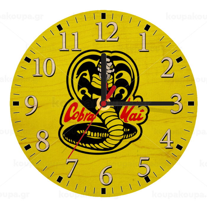 Cobra Kai Yellow, Ρολόι τοίχου ξύλινο plywood (20cm)