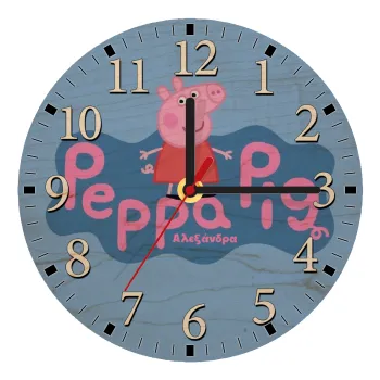 Πέππα το γουρουνάκι μπλε με όνομα, Ρολόι τοίχου ξύλινο plywood (20cm)