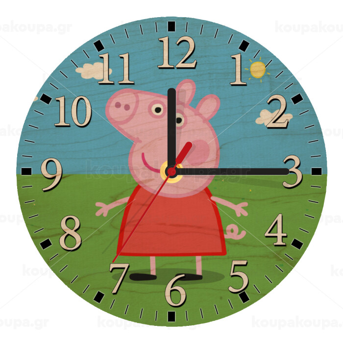 Πέππα το γουρουνάκι, Ρολόι τοίχου ξύλινο plywood (20cm)
