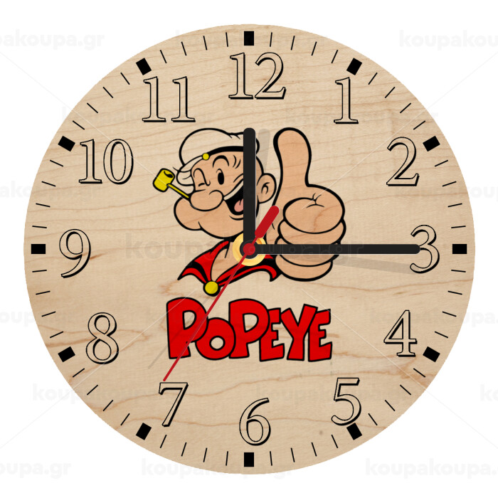 Popeye the sailor man, Ρολόι τοίχου ξύλινο plywood (20cm)