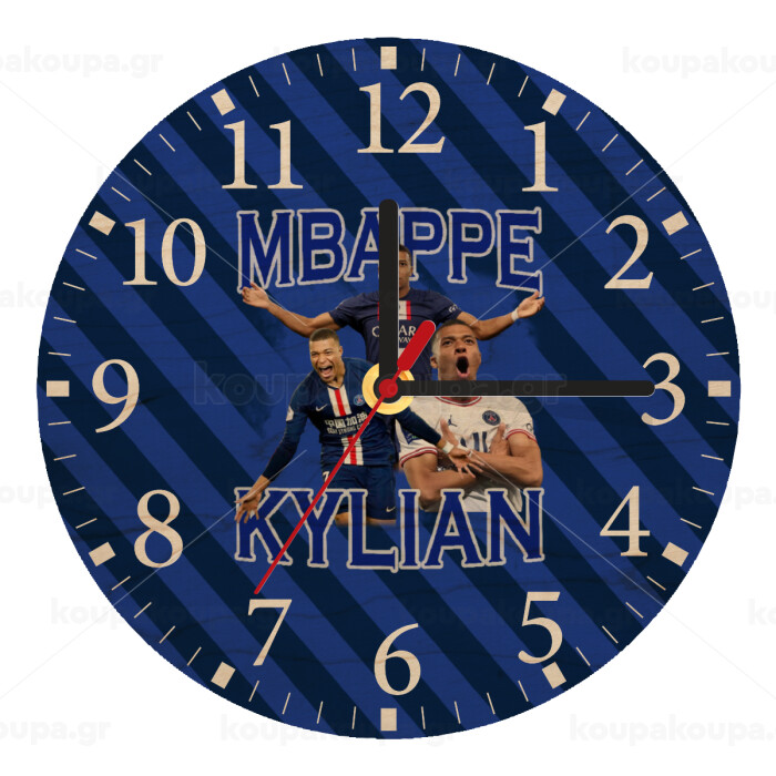 Kylian Mbappé, Ρολόι τοίχου ξύλινο plywood (20cm)
