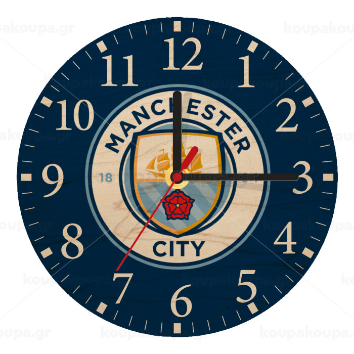 Manchester City FC , Ρολόι τοίχου ξύλινο plywood (20cm)