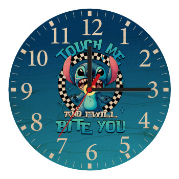 Stitch Touch Me And I Will Bite You, Ρολόι τοίχου ξύλινο plywood (20cm)