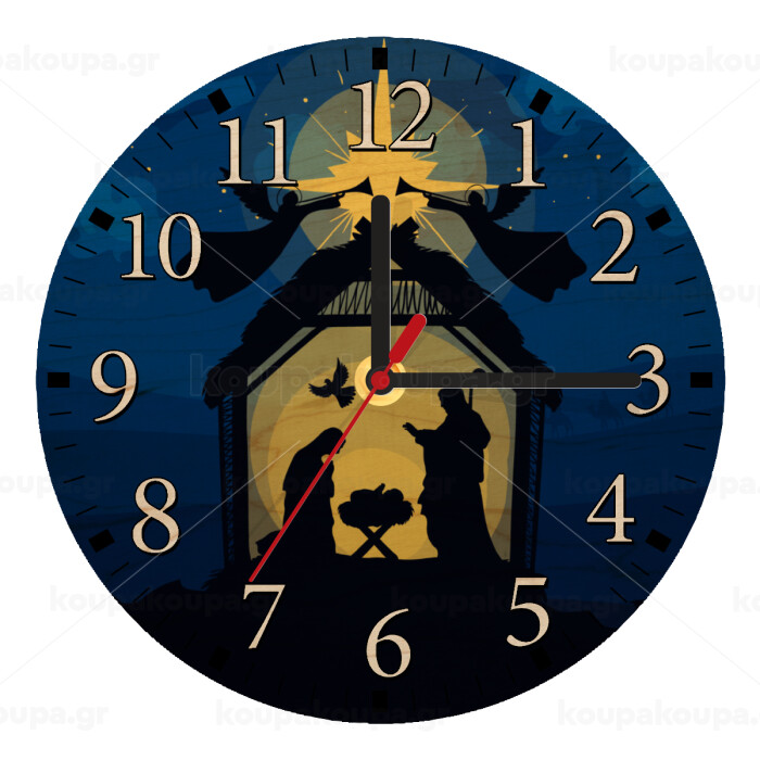 Nativity Jesus manger, Ρολόι τοίχου ξύλινο plywood (20cm)