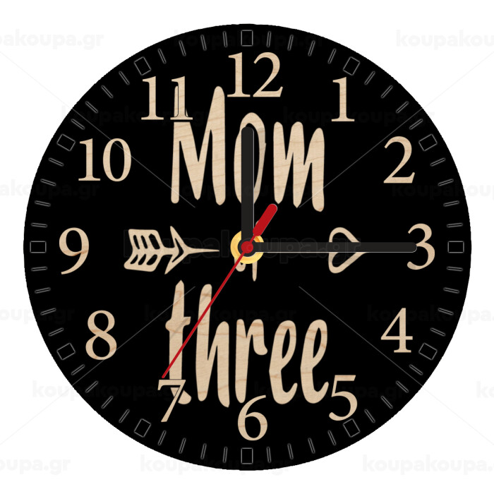 Mom of three, Ρολόι τοίχου ξύλινο plywood (20cm)
