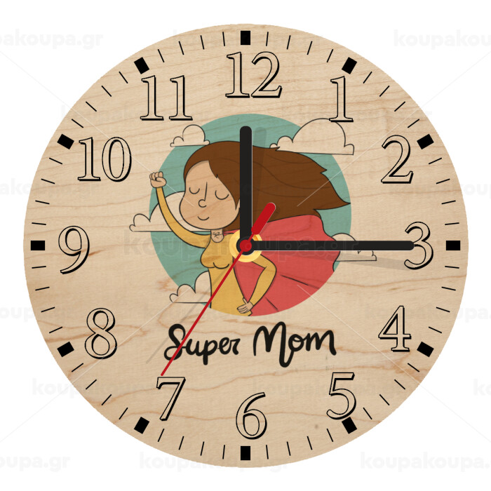 Super mom, Ρολόι τοίχου ξύλινο plywood (20cm)