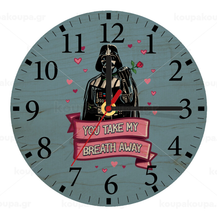 Darth Vader, you take my breath away, Ρολόι τοίχου ξύλινο plywood (20cm)