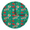 I Love You hearts rings & kiss pattern, Ρολόι τοίχου ξύλινο plywood (20cm)