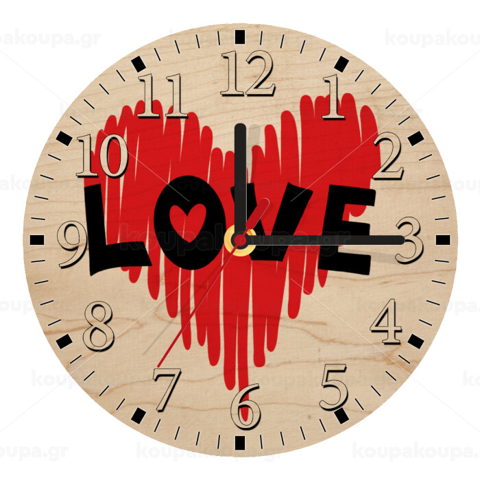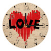 I Love You red heart, Ρολόι τοίχου ξύλινο plywood (20cm)