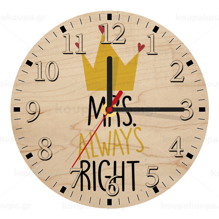 Mrs "Always" right, Ρολόι τοίχου ξύλινο plywood (20cm)