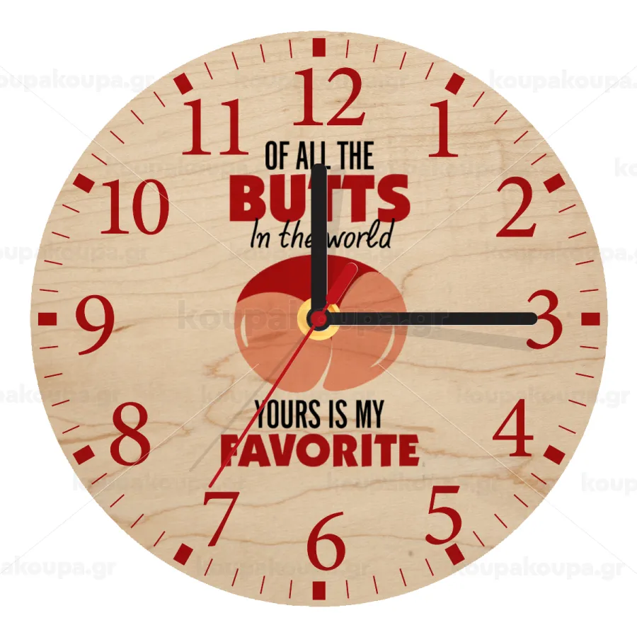 Of all the Butts in the world, your's is my favorite, Ρολόι τοίχου ξύλινο plywood (20cm)