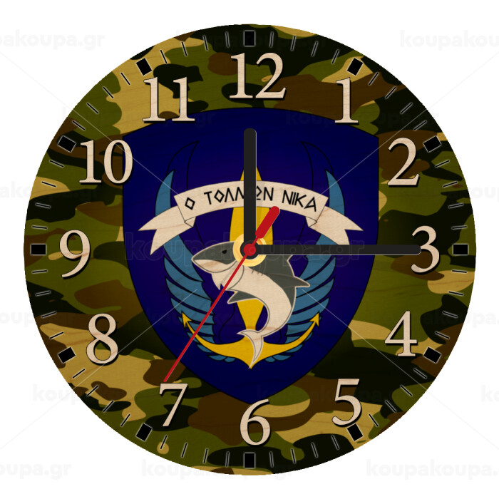 Hellas special force's shark, Ρολόι τοίχου ξύλινο plywood (20cm)