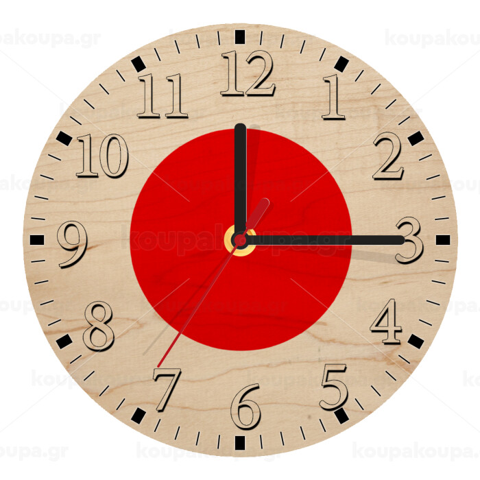 Japan flag, Ρολόι τοίχου ξύλινο plywood (20cm)