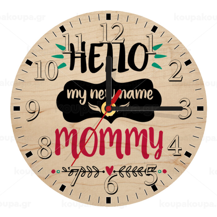 Hello, my new name is Mommy, Ρολόι τοίχου ξύλινο plywood (20cm)