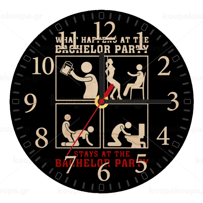 What happens at the bachelor party, stays at the bachelor party!, Ρολόι τοίχου ξύλινο plywood (20cm)
