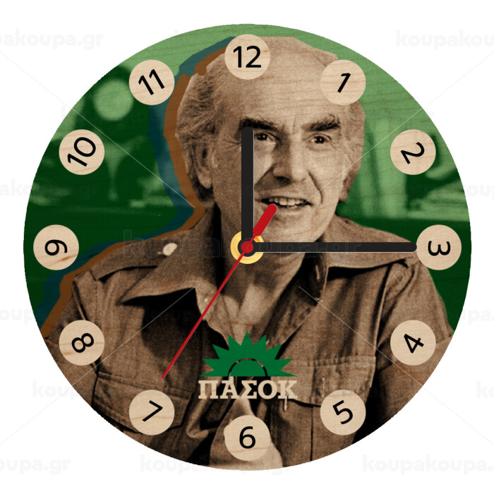 ΠΑΣΟΚ Ανδρέας Παπανδρέου, Ρολόι τοίχου ξύλινο plywood (20cm)