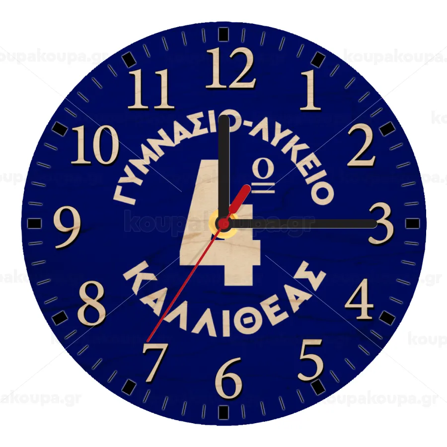 Έμβλημα Σχολικό μπλε κλασικό, Ρολόι τοίχου ξύλινο plywood (20cm)