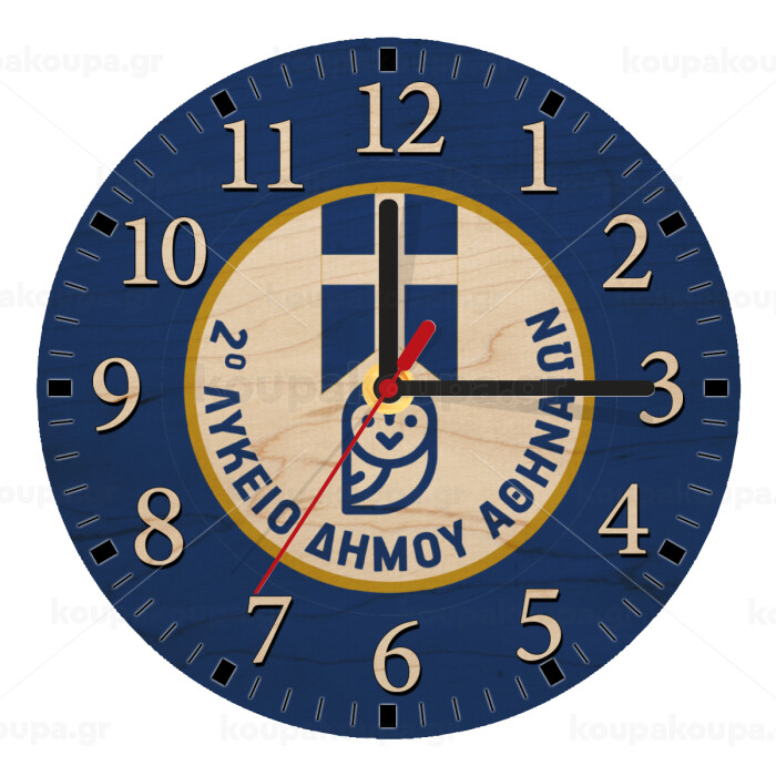 Έμβλημα Σχολικό μπλε owl, Ρολόι τοίχου ξύλινο plywood (20cm)