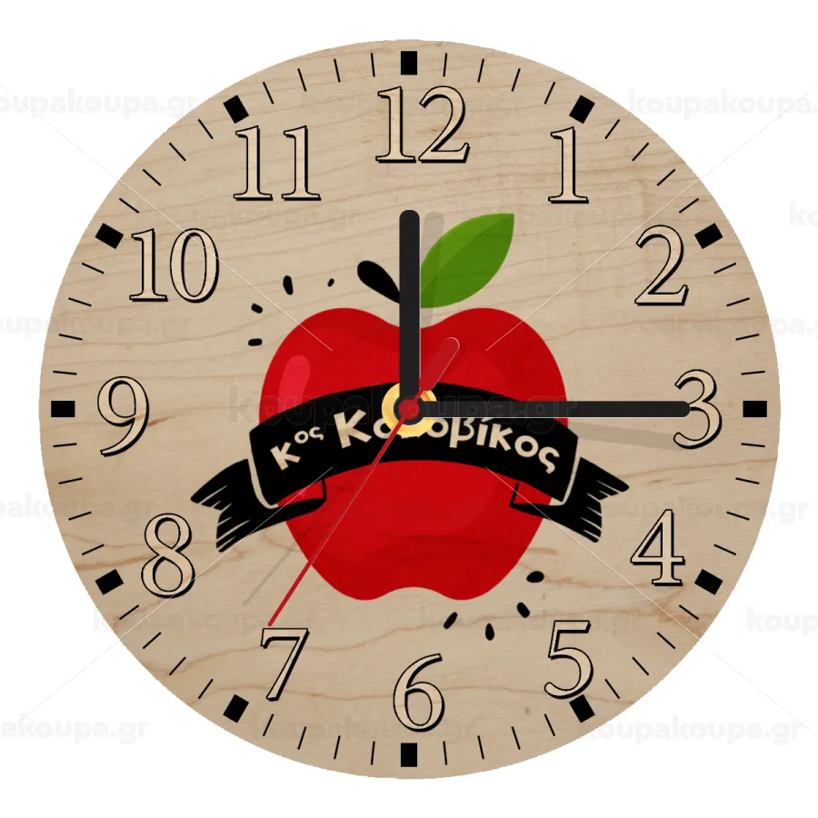 Αναμνηστικό Δώρο Δασκάλου Κόκκινο Μήλο, Ρολόι τοίχου ξύλινο plywood (20cm)