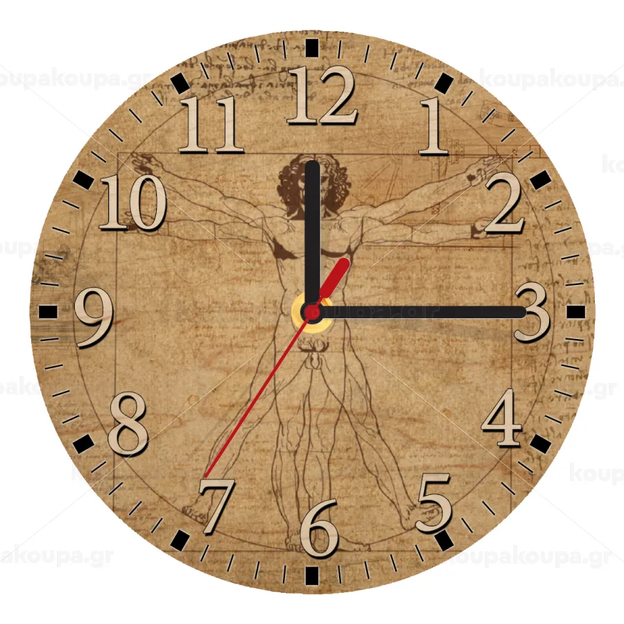 Leonardo da vinci Vitruvian Man, Ρολόι τοίχου ξύλινο plywood (20cm)