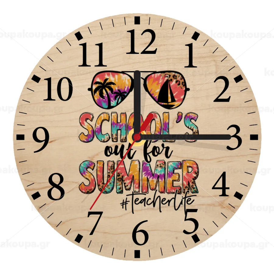 School's Out For Summer Teacher Life, Ρολόι τοίχου ξύλινο plywood (20cm)