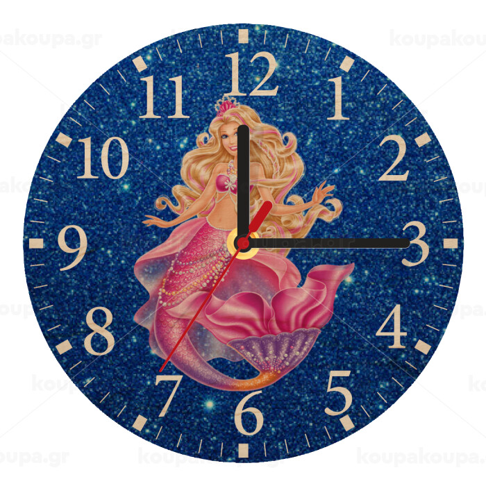 Barbie mermaid blue, Ρολόι τοίχου ξύλινο plywood (20cm)